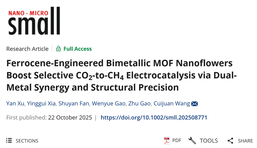 该论文以“Ferrocene-Engineered Bimetallic MOF Nanoflowers Boost Selective CO2-to-CH4 Electrocatalysis via Dual-Metal Synergy and Structural Precision” 为题发表国际知名期刊《Small》上。其中,av直播